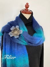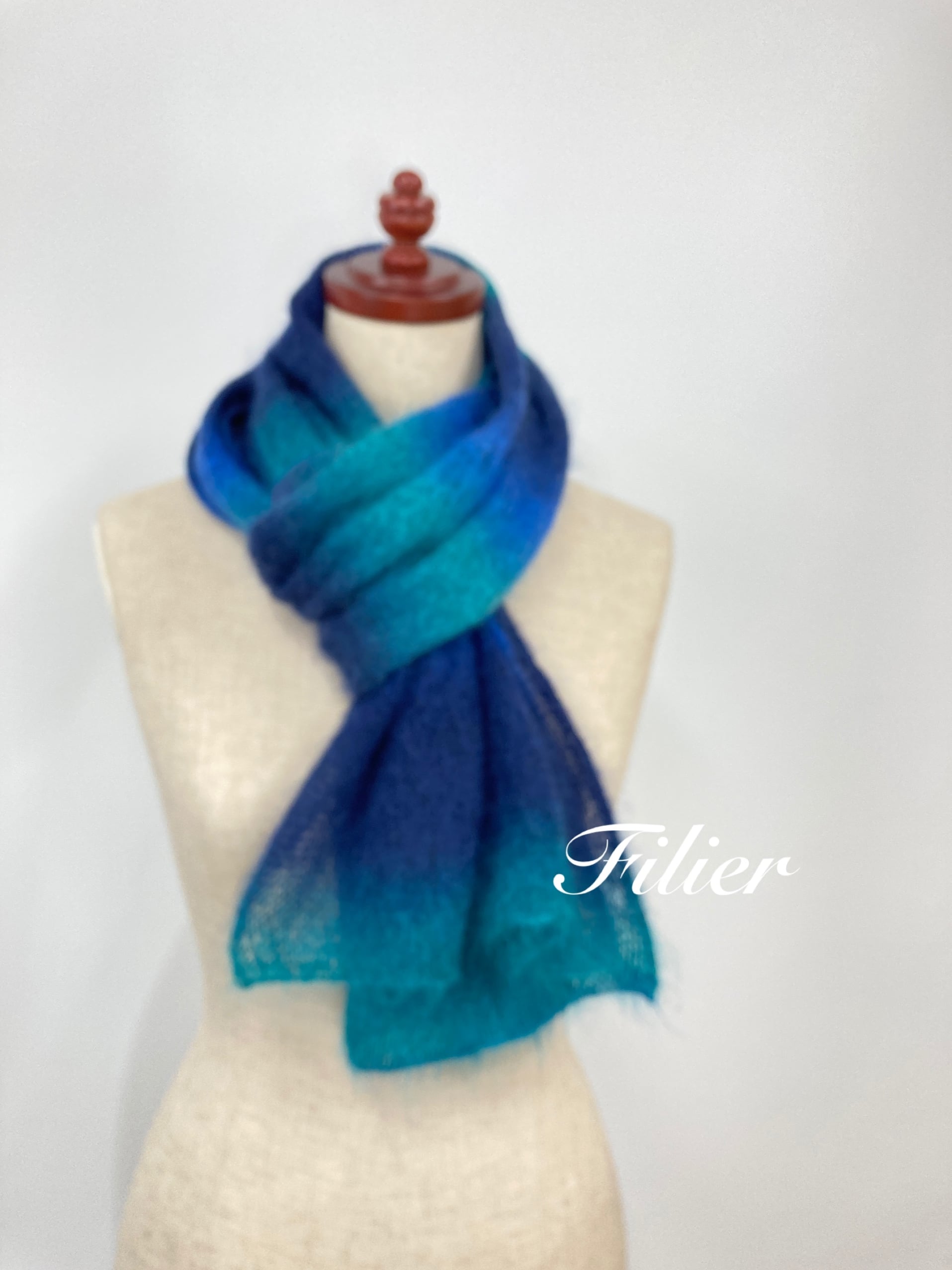 どの部分を多く見せるかで異なる雰囲気を出せる楽しいストールです。