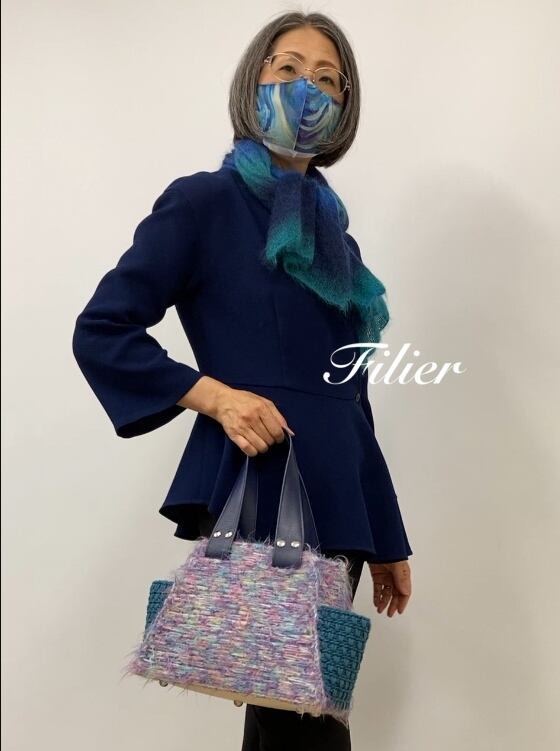 コートの差し色にのぞかせたり、肩を覆うようにかけたりとアレンジをお楽しみいただけます。