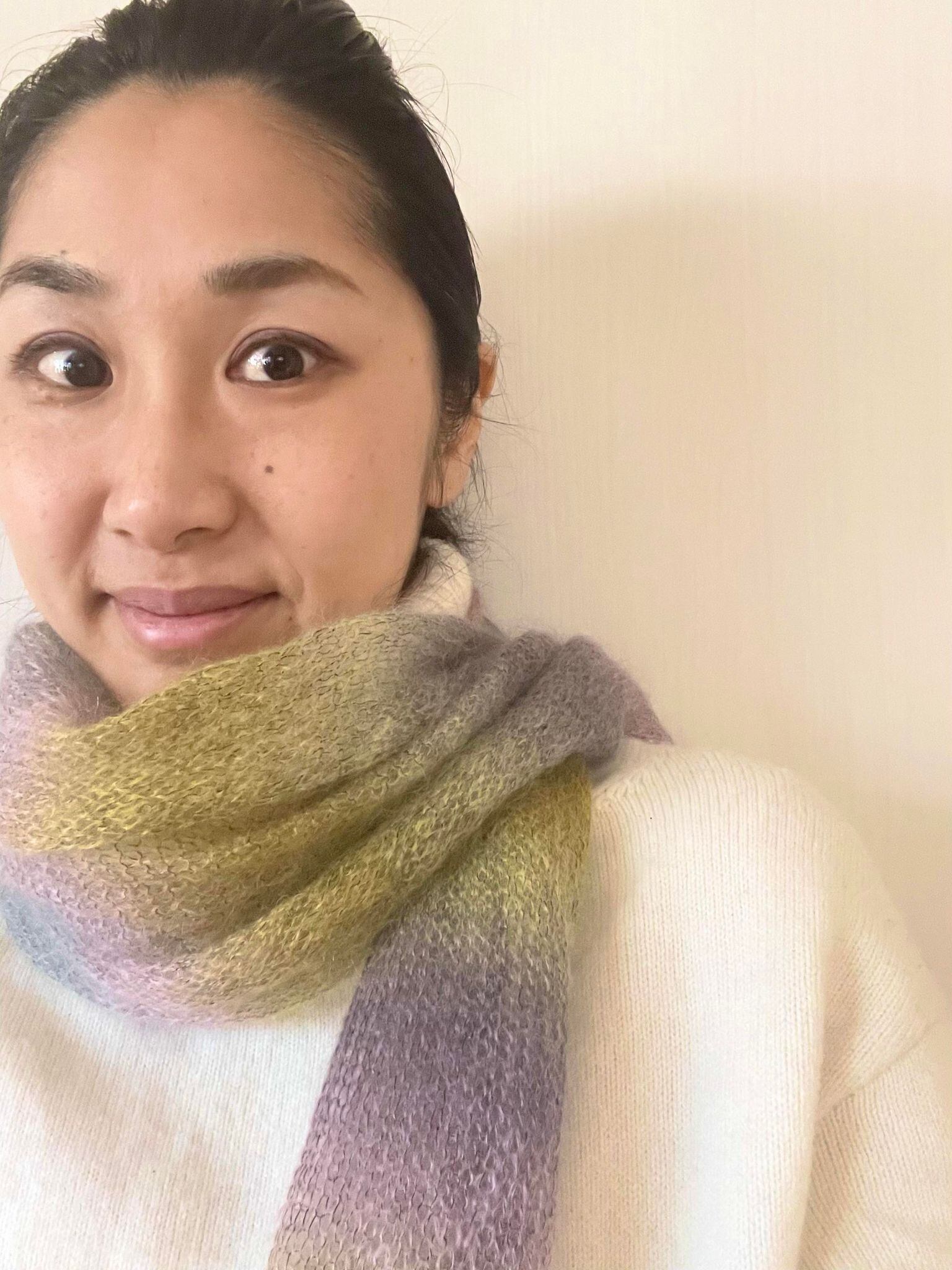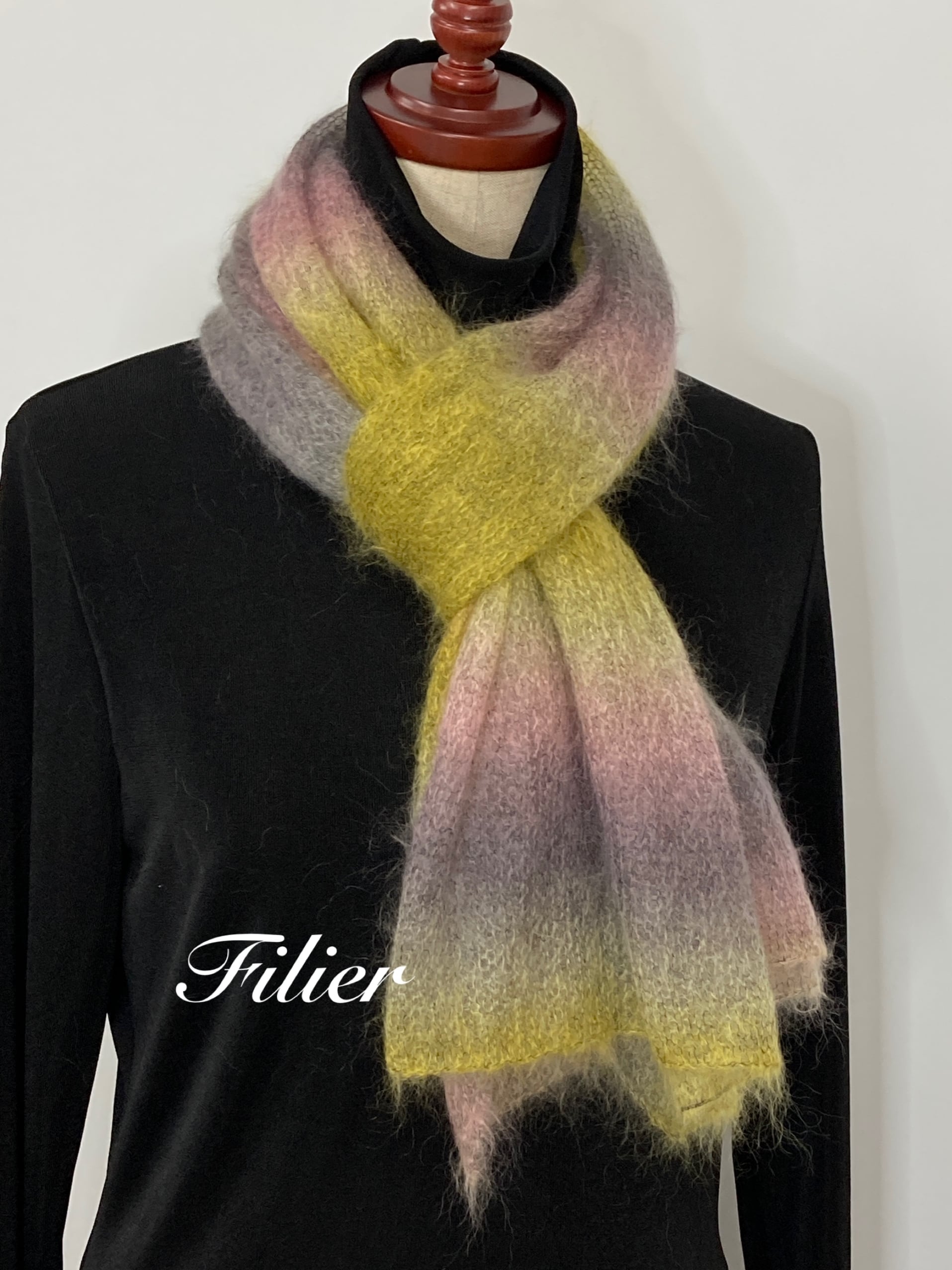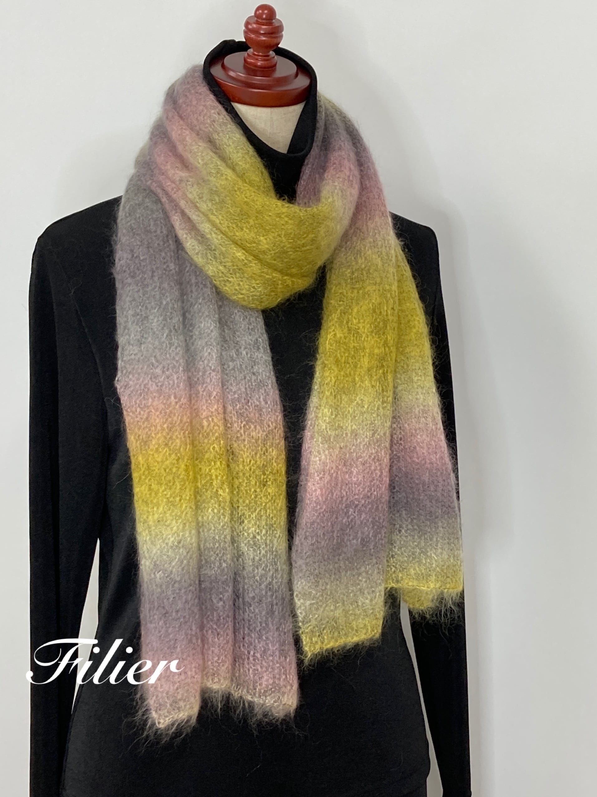 似た配色でS38がありますが、S38よりも一層華やかさを感じさせるストールです。
