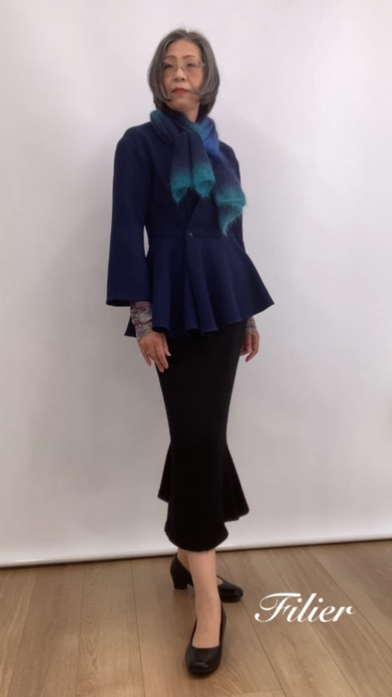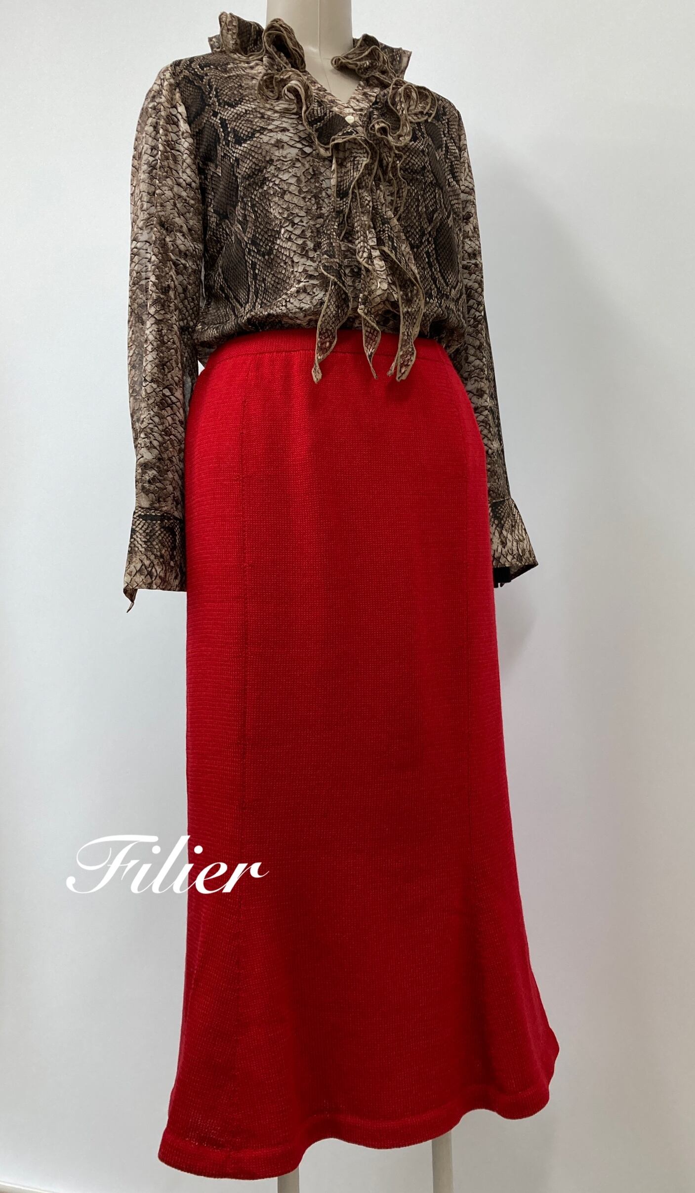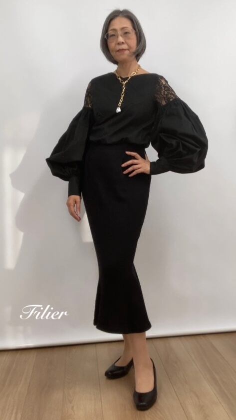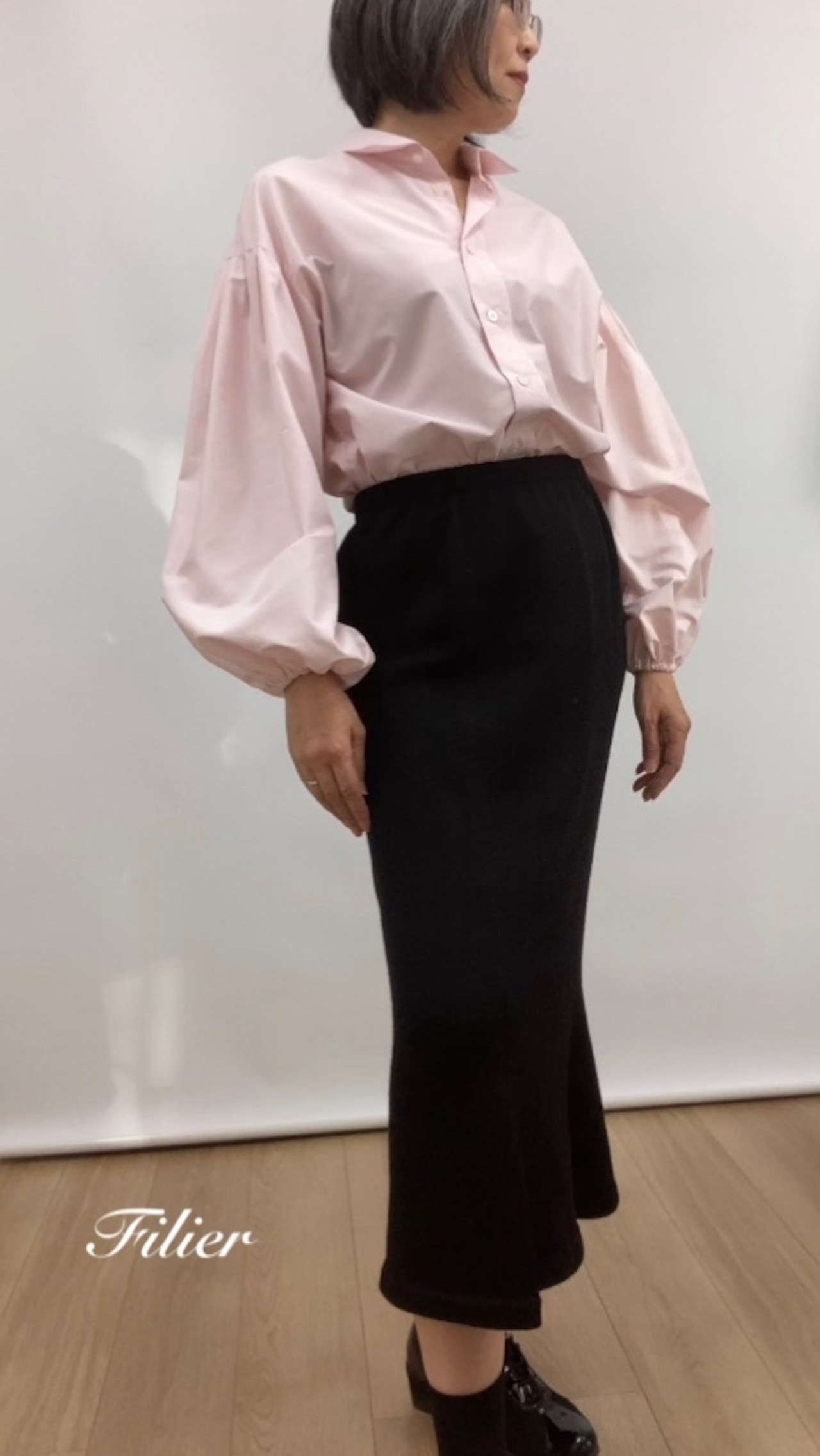マーメイドラインがエレガントでブラウスやジャケットなど、上に着る物を選ばないシンプルなスカートです。