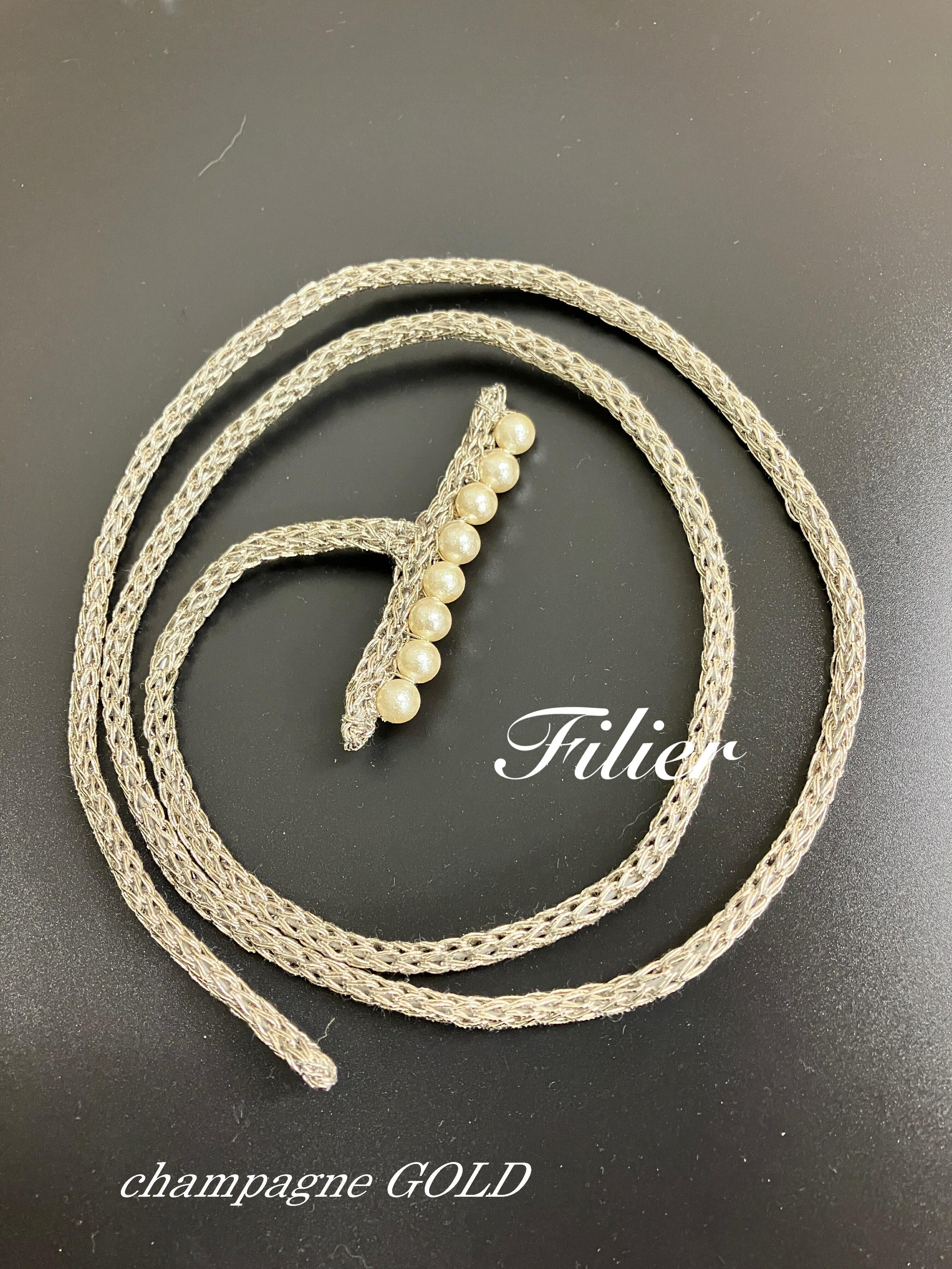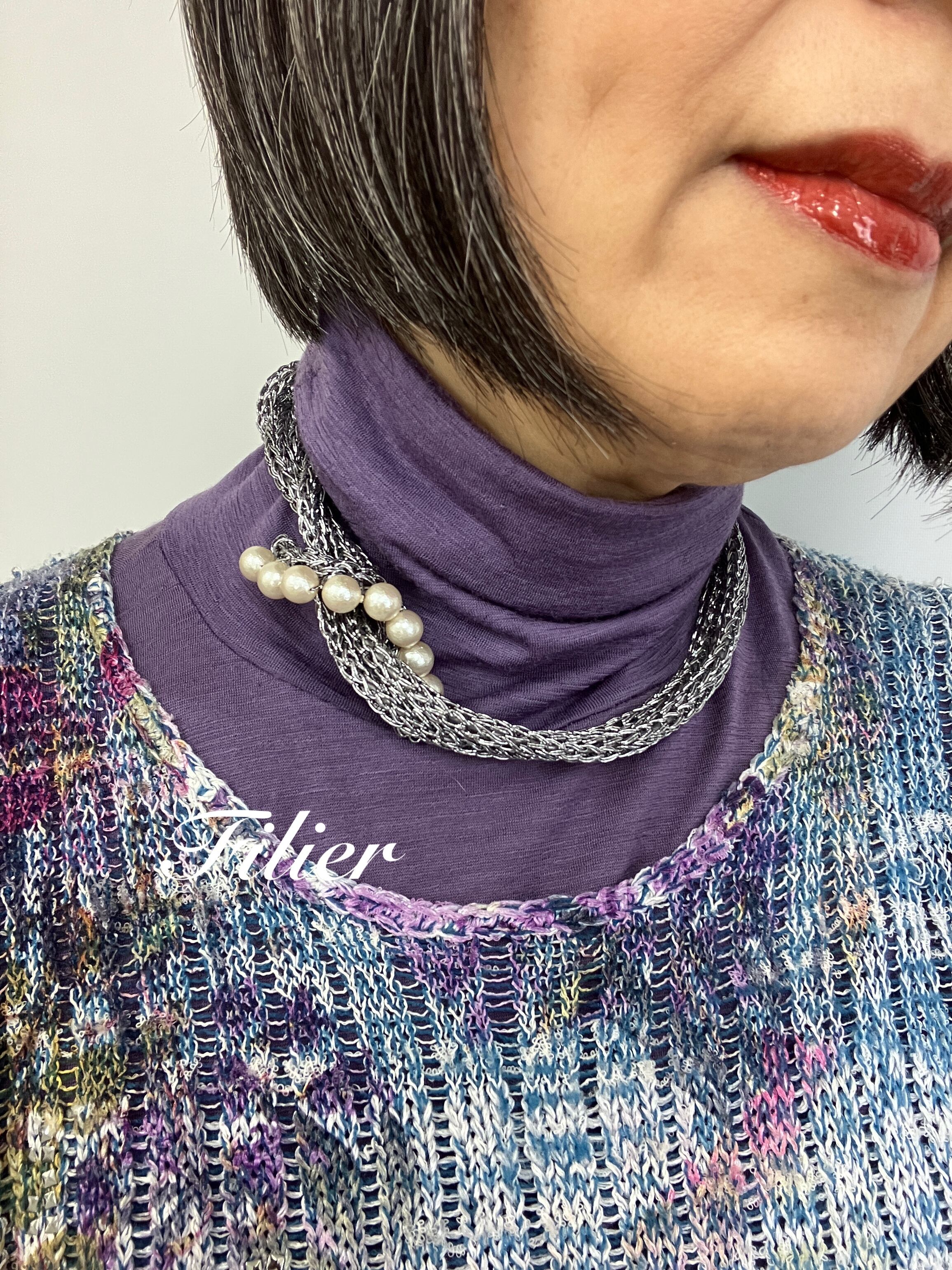 リリヤーンネット状のコードを作り、中にワイヤーを通して作成したネックレスです。